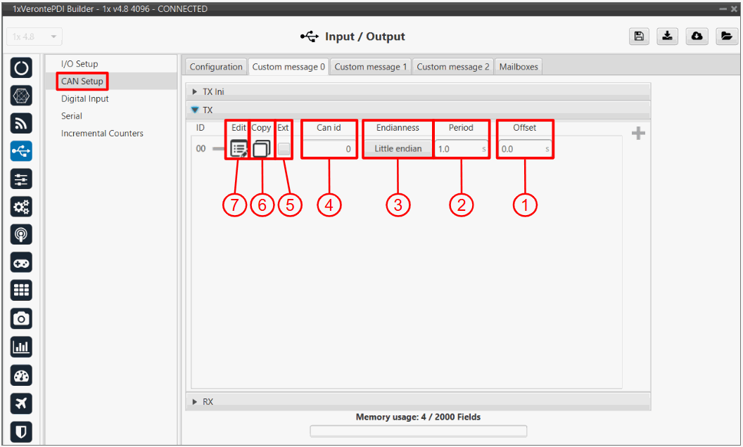 • TX Ini: Used to configure transmitted messages that are only sent once at the beginning of the operation (sent when the autopilot boots up).