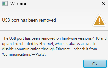 Hardware version 4.12 does not allow connection via USB.