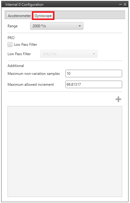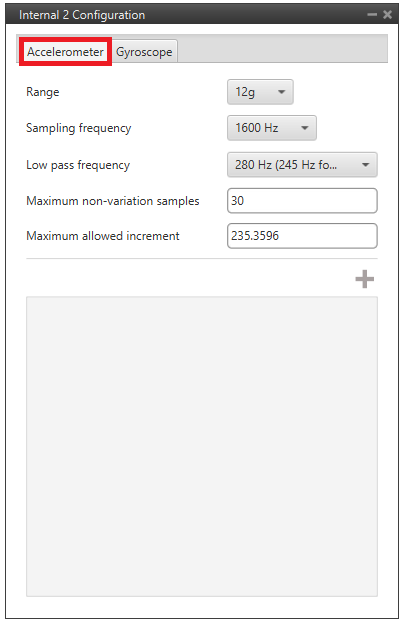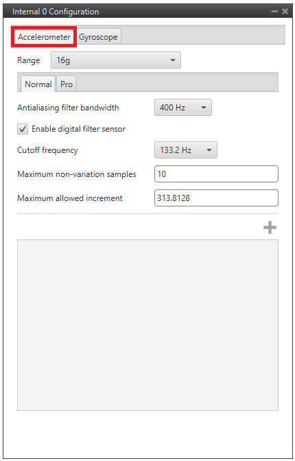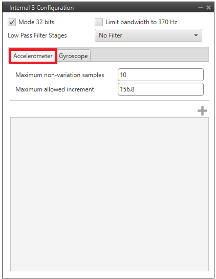 • Enable digital filter sensor: Enables a low pass filter which its cutoff frequency is configured from the options 16.65Hz, 66.6Hz, 133.2Hz and 740.0Hz.