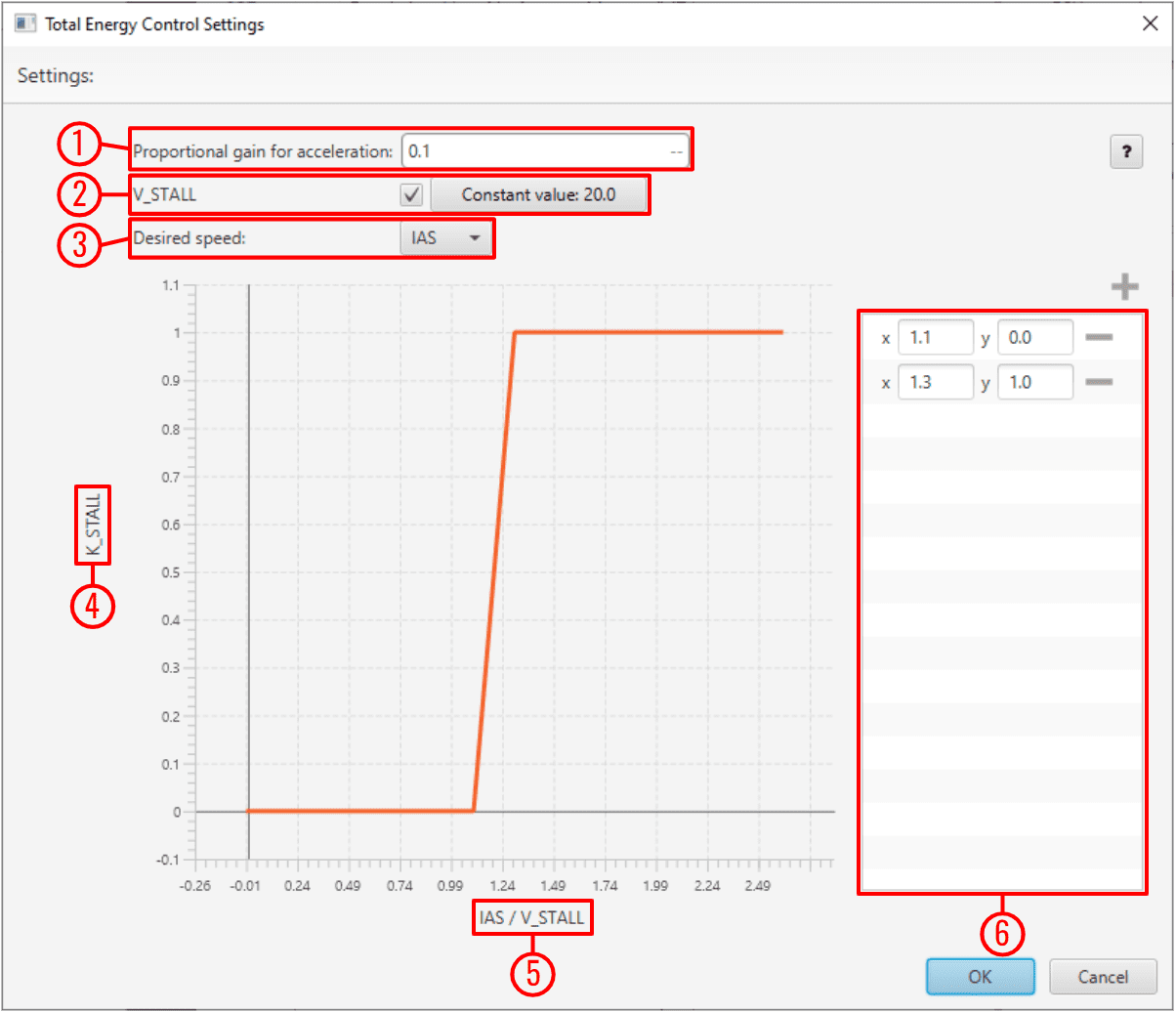 4. K_STALL: Stall correction coefficient. If 1, energy control is balanced for altitude and speed. If 0 only speed control is taken into account.