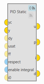 PID Static block allows the user to build a PID (Proportional, Integral and Derivative) controller with fixed gains.