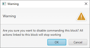 To avoid disabling a block by mistake, the following warning message appears when disabling it: