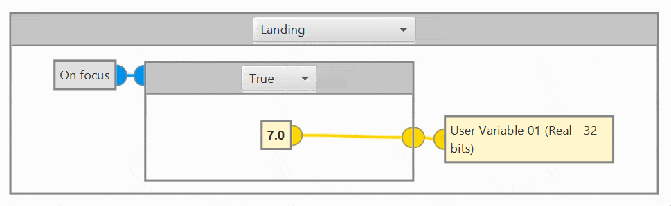 The On Focus block outputs a boolean value, which is only True the first time the block is executed.