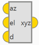 azeld -> xyz: Conversion from azimuth, elevation and distance to NED (North, East, Down).