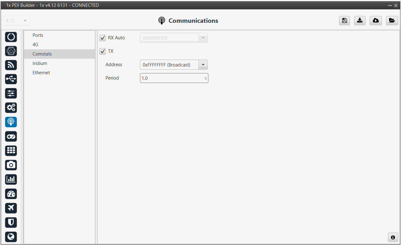 TX: When enabled, the unit will periodically send its Comstats message (set the period). Enter the address to which the message should be sent.