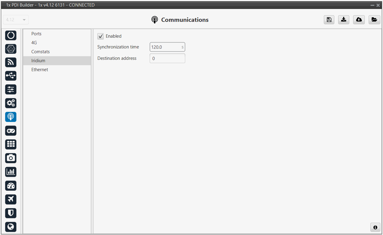 Checking the Enable box will enable the use of Iridium communication through the Iridium Consumer/Producer in the I/O Setup.