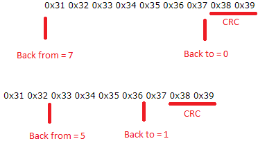 Back From: Indicates that the CRC will be computed from the indicated byte (inclusive).