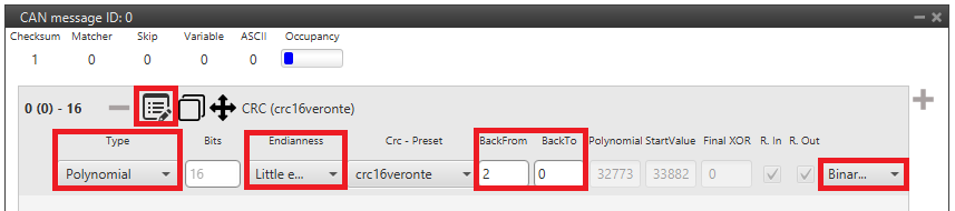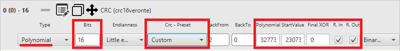 - Polynomial: Polynomial algorithm for CRC. Select from a list of predefined Embention CRC (CRC-Preset option). This is the most used type.