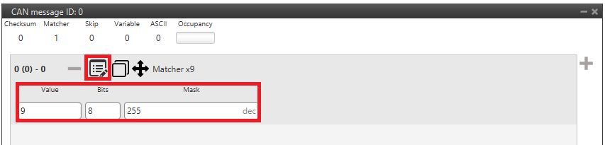 For example, a matcher of 8 bits with a value of 9 will be reading/sending: .