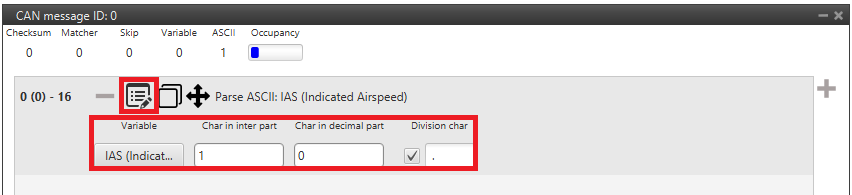 ASCII protocol is used for transforming a character array into decimal values. For such task, the user needs to define the following parameters: