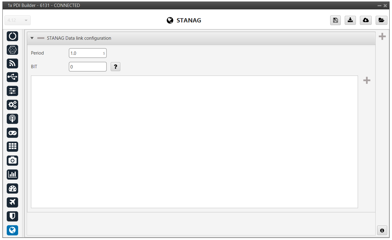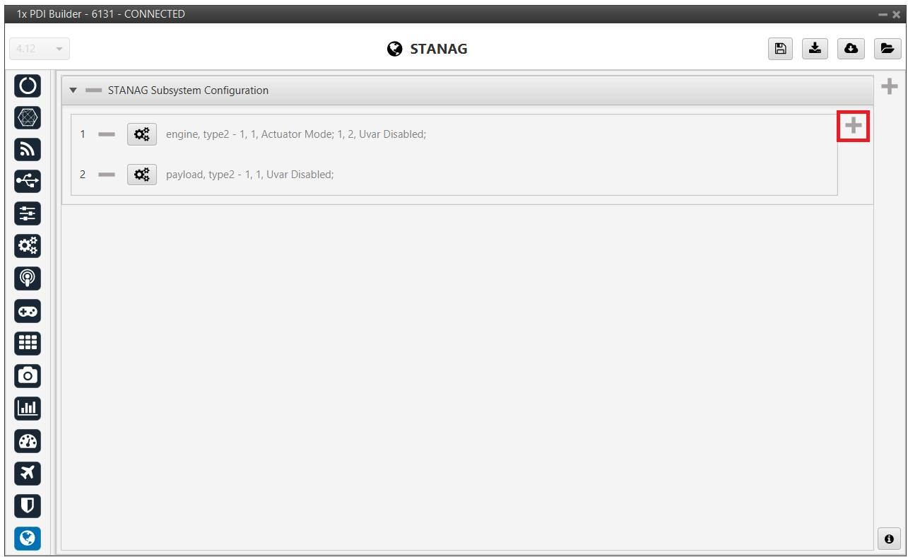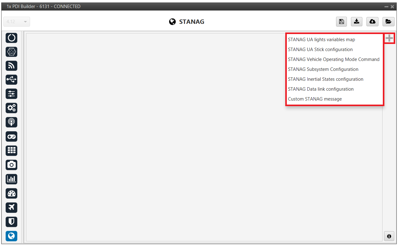 The STANAG 4586 panel is used to configure various communication messages, which represent the primary protocol for the autopilot's interactions. This interface allows the user to integrate specific messages one by one, making the process completely transparent within the firmware.