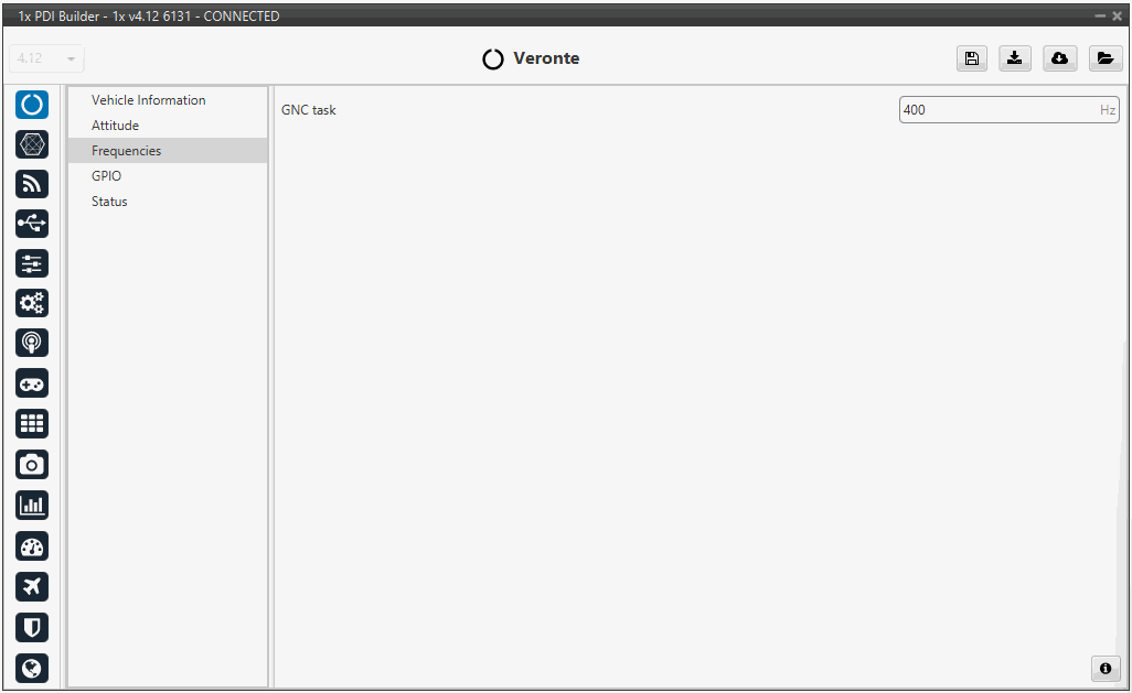 400 Hz can be used only for simple configurations, so it is often necessary to reduce the frequency to 250-300 Hz. To find out why the user should reduce the GNC Task frequency, see Reducing GNC Task frequency - Troubleshooting section of this manual.