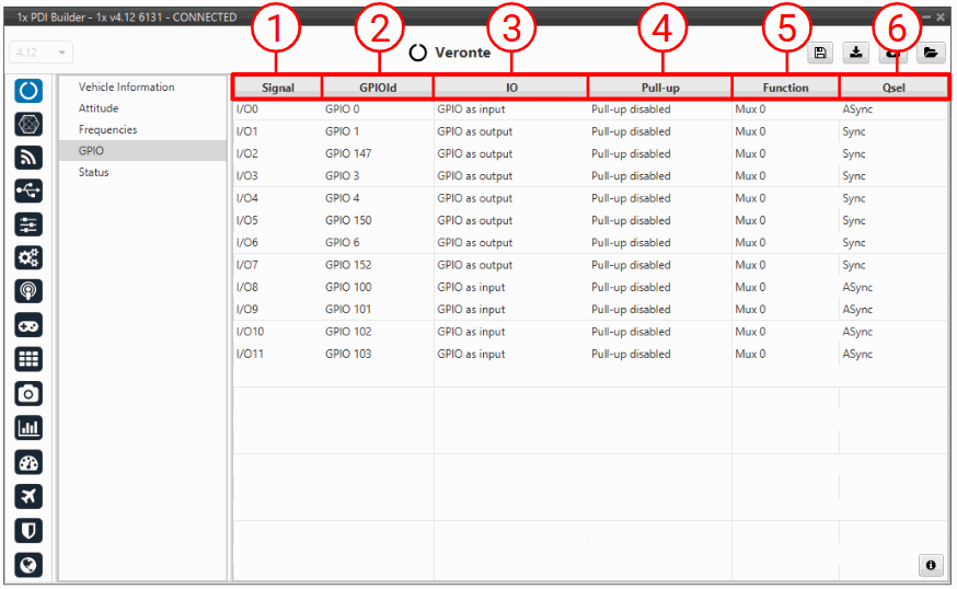 Once the change has been saved, check that the corresponding PWM pin has been added to the PWM panel or that the corresponding GPIO pin has been added to the GPIO panel, depending on the change that has been made.