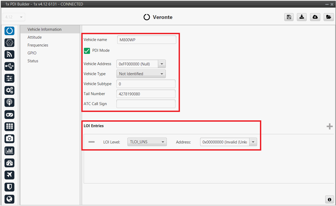 - Vehicle Type: Selects the category of UAV. Choose between Not Identified, BAMS UA, Crecerelle.