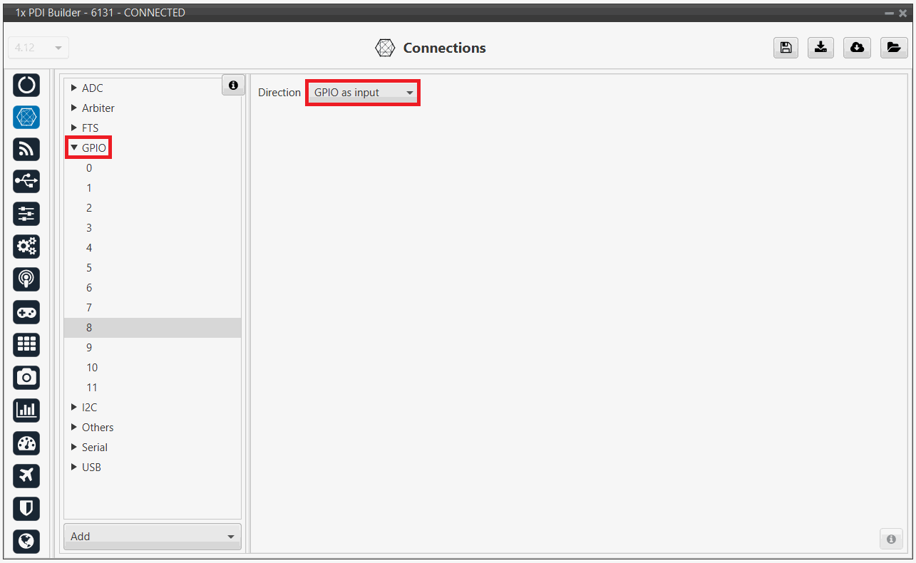 Go to Connections menu GPIO panel.