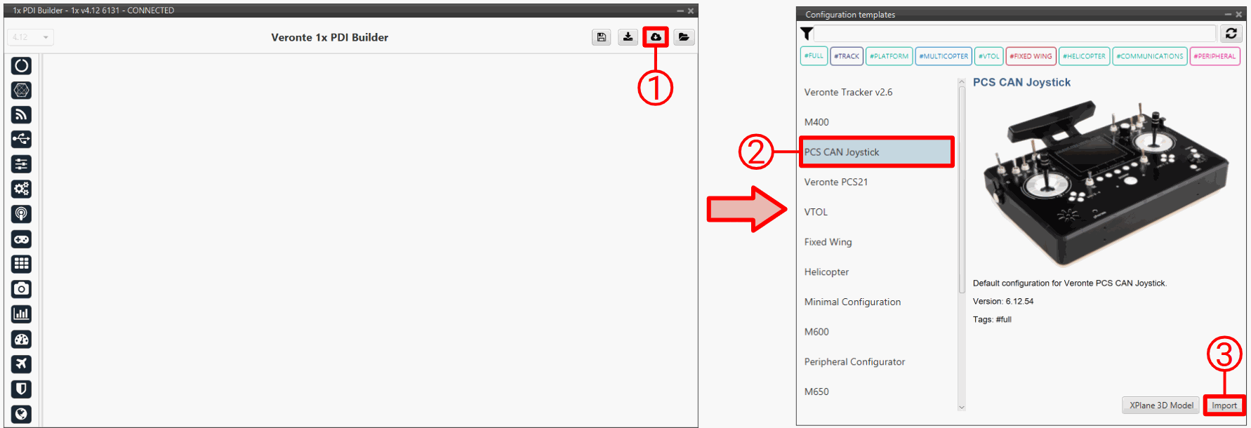 • To download it, click on the Import PDI from repo button, then select the PCS CAN Joystick template and finally click on Import.