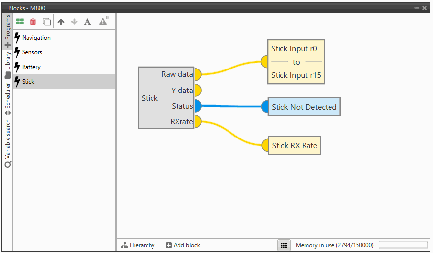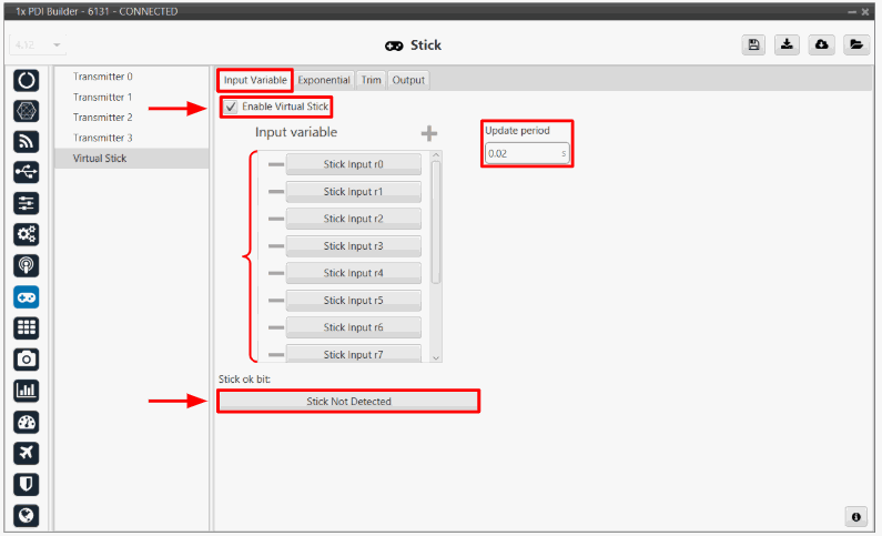 Then, if all is correct, users can check that 'Stick not detected' variable will be true.