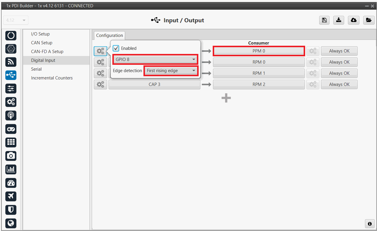 On-board PPM receiver case - Digital Input configuration