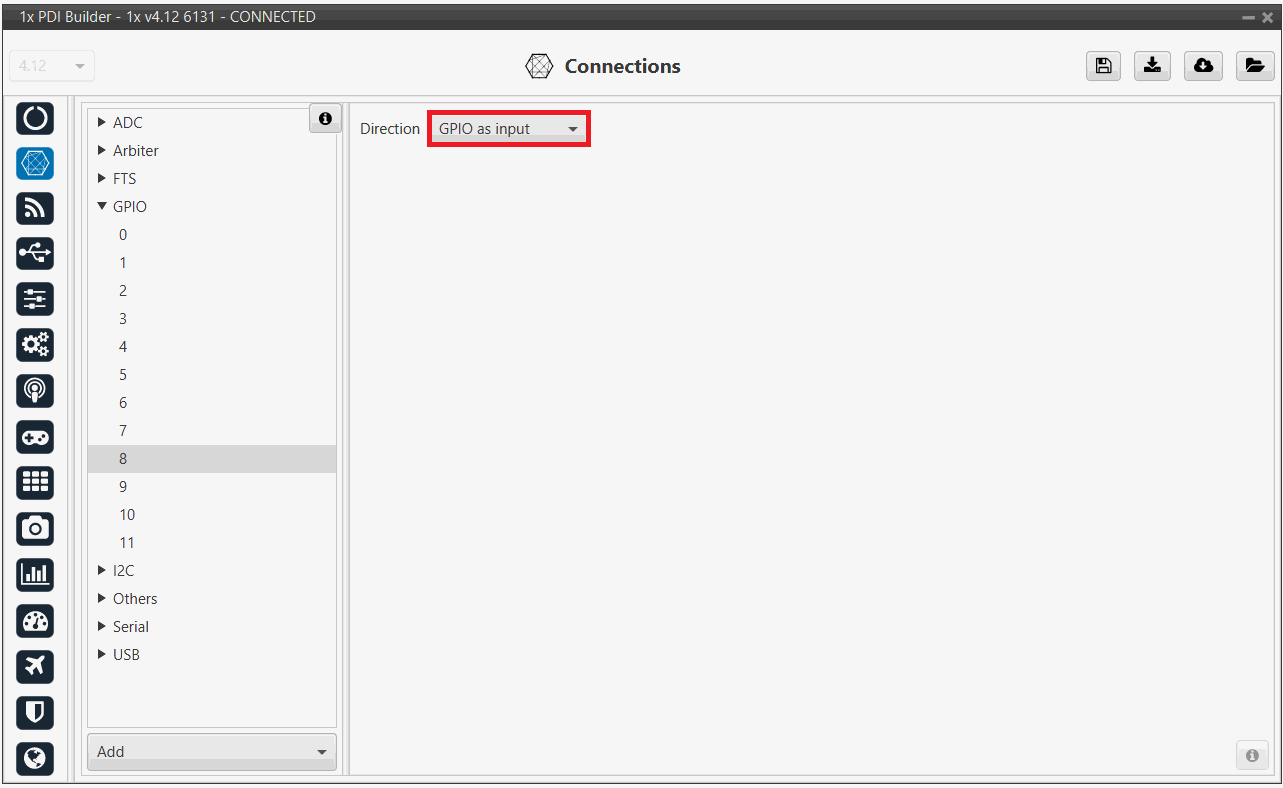2. Go to Connections menu GPIO panel.