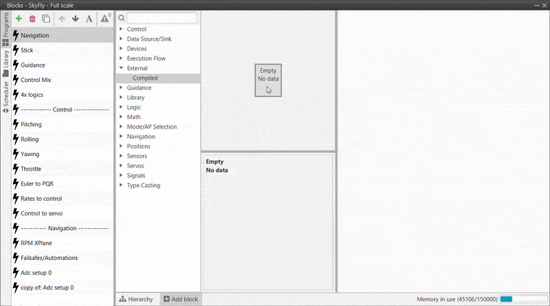 The resulting block, visible in the interface, requires the user to drag and drop it onto the adjacent panel.