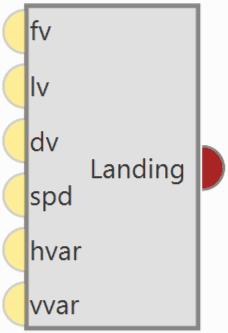 The generated trajectory of the landing guidance defines the route that the aircraft follows from the point when the phase with this guidance is entered, to the point where it touches the ground, see the Figure below. The landing route has two parts, being decomposed into 6 patches: