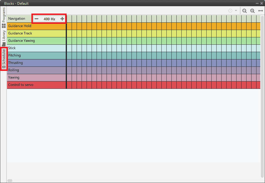 Scheduler: In this tab users can configure the frequency (in Hz) at which each program is executed.