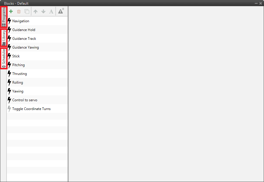 Library: Here the user can create custom blocks. This tab is explained in more detail in Library blocks section.