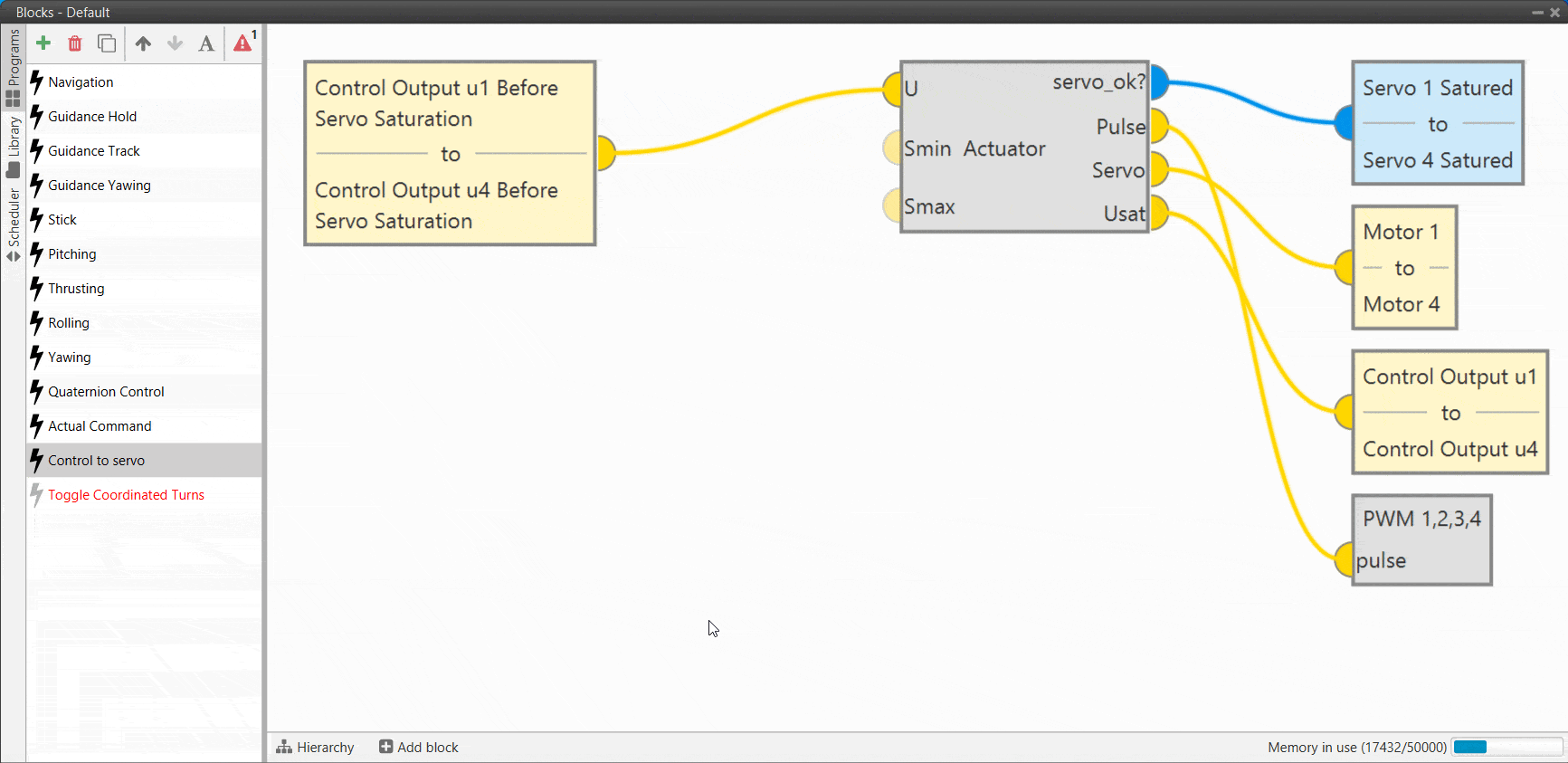 - Navigation: These blocks allow the autopilot navigation to be configured.