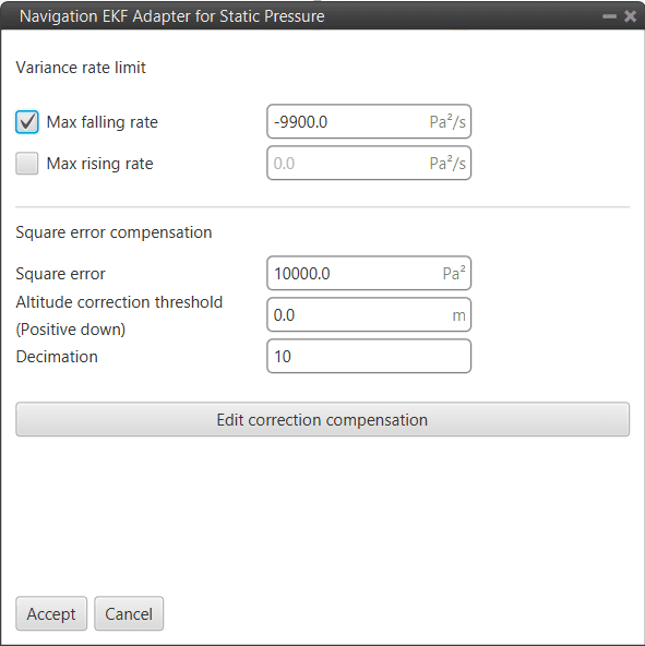 - Square error on strong acceleration for position: Under strong acceleration the variance for the position solution is changed to the specified value.