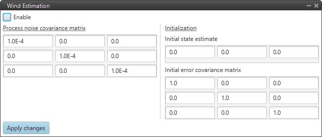 Wind: By clicking on the 'Wind Estimation' button, a configuration menu will be displayed: