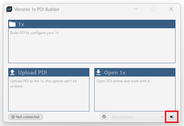 If it is correctly connected, 1x PDI Builder will display the mode in which the connected unit is. In addition, a PDI error button