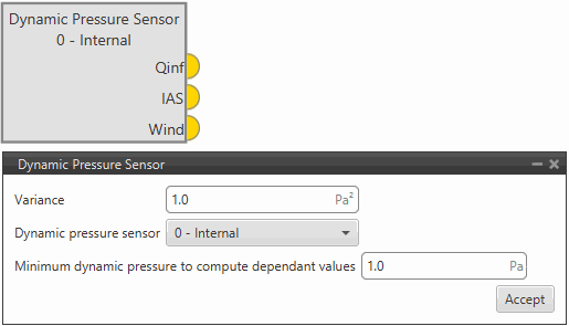 This panel displays the possible parameters that can be configured for the internal Dynamic Pressure sensor.