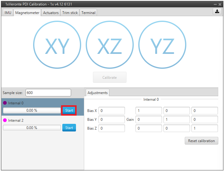 To start the calibration, press the Start button of the magnetometer sensor to be calibrated, so that the system can capture the data from the magnetometer.