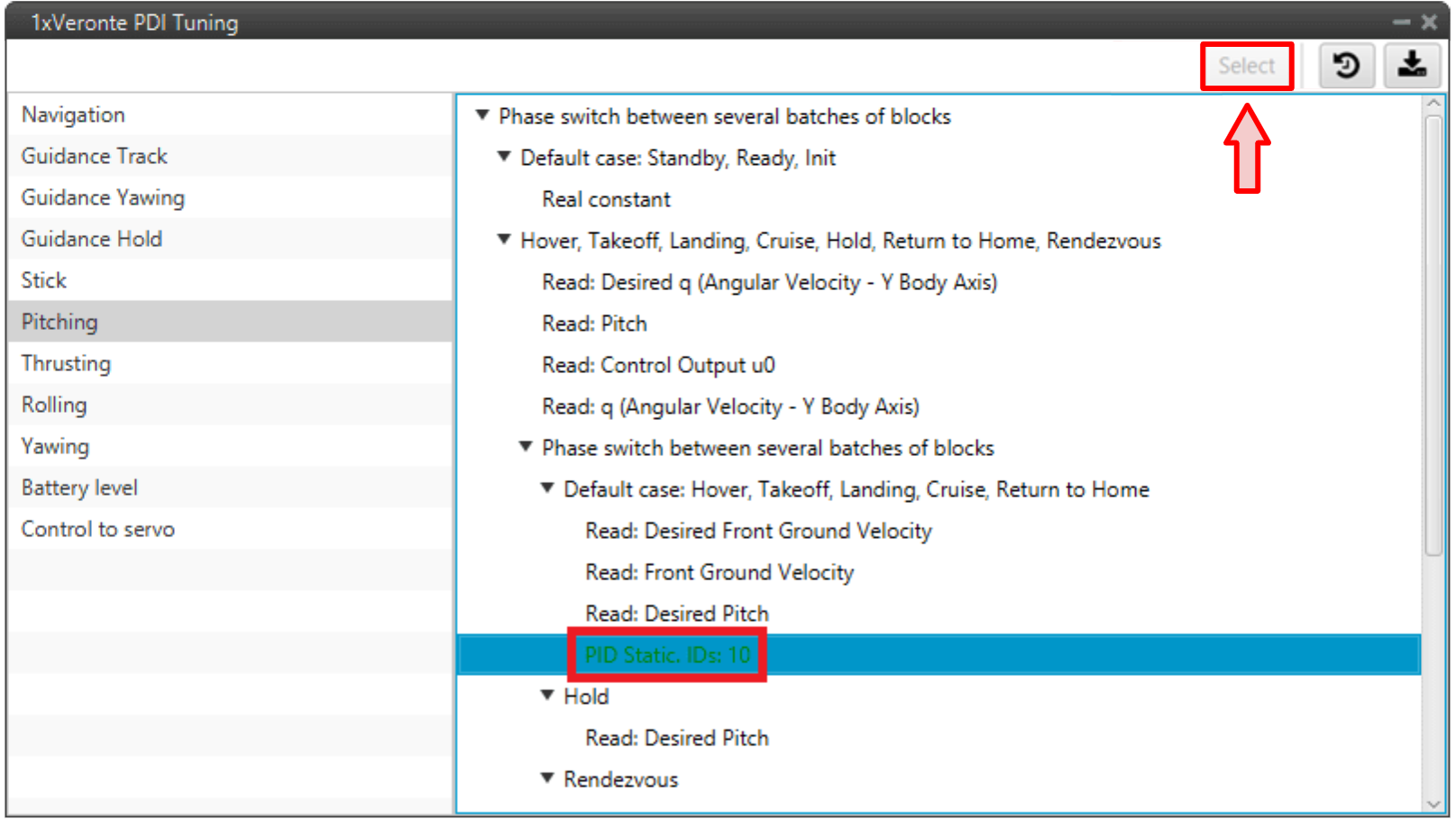 To do this, click on the PID block and then click on the 'Select' button at the top of the menu:
