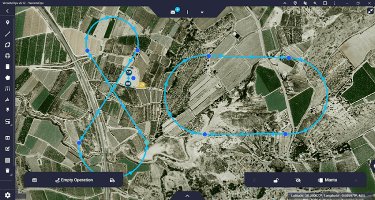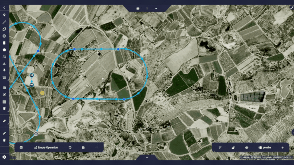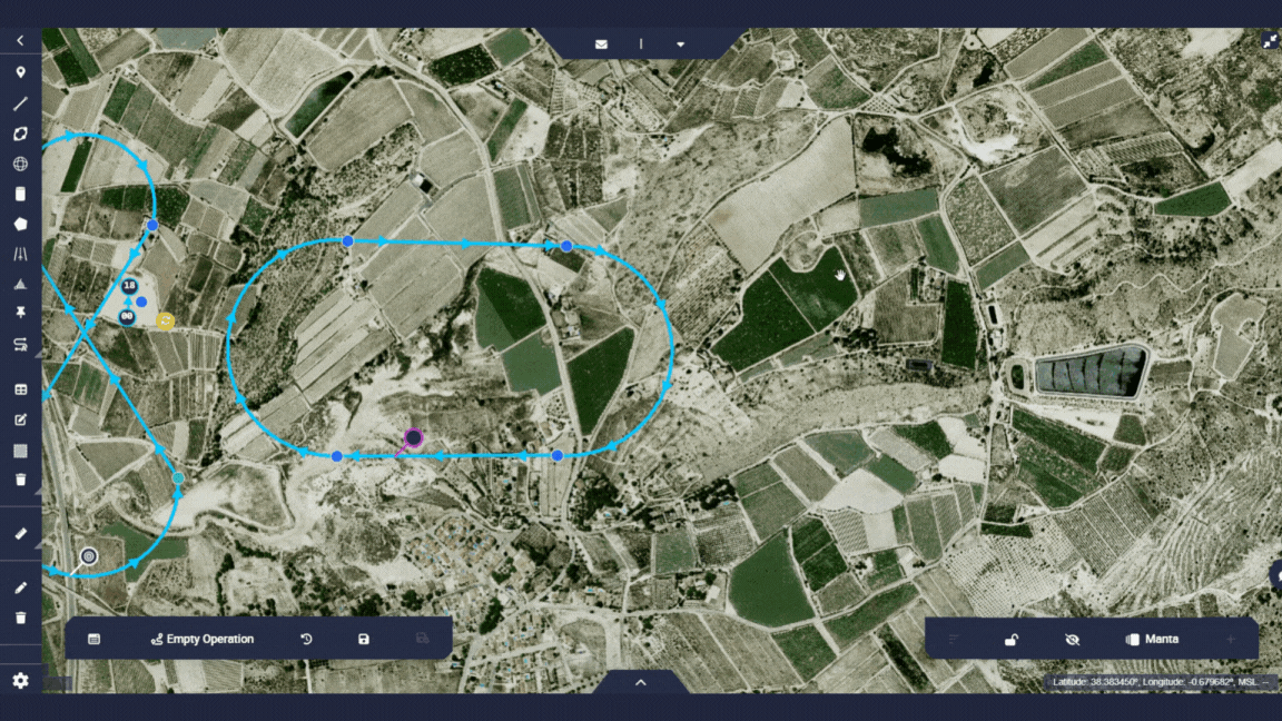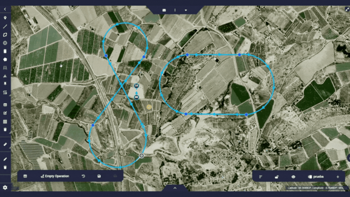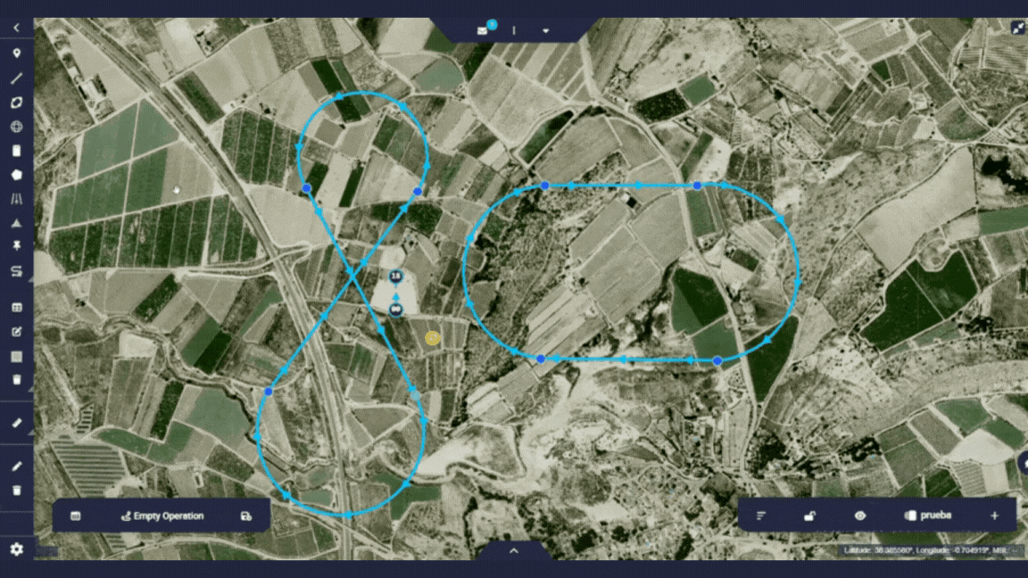 The operation starts with the route of the first mission, therefore, a point of this circuit is defined as the Start Route. At one point on this route the Mark A is defined.