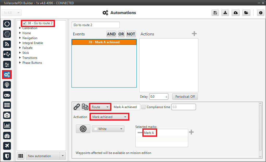 An automation will be created so that, once this mark is achieved, the aircraft will go to the desired point:
