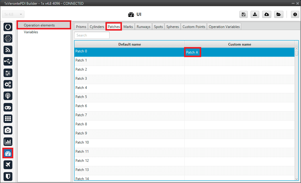 In the 1x PDI Builder app go to UI menu Operation elements panel Patches tab.