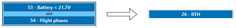 When the battery drops below a certain value, in this case 21.7 V, and the aircraft is in one of the flight phases (Loiter, Hover, Hold, Cruise, Climb, Approach, Return Home or Take-off), the autopilot will automatically guide the aircraft to RTH phase.
