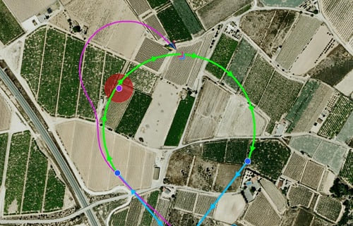 As area 2 has been defined as an obstacle, the guidance program will prevent the aircraft from flying within this area by creating an alternative trajectory: