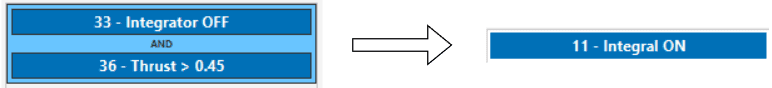 This flight phase is only performed in FW flight configuration, so the Stick - Transition variable that defines the configuration in which the aircraft flies must be greater than 0.8. This is because this variable is 0 when the configuration is quadcopter and 1 when the configuration is FW.