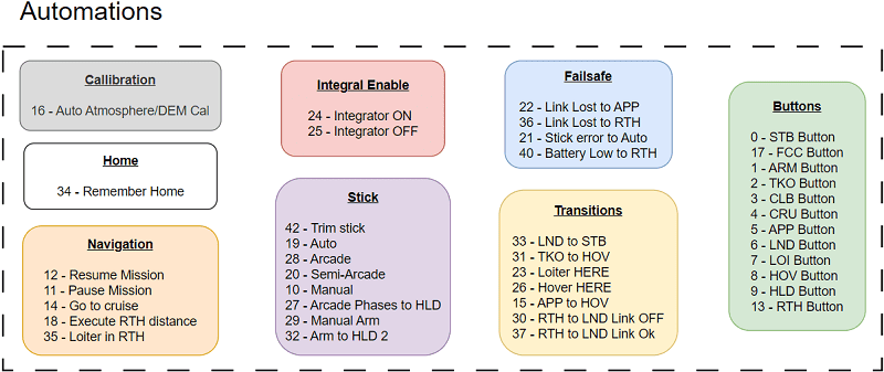 The different events, actions and automations that have been created for the operation of the Embention VTOL aircraft are shown below.