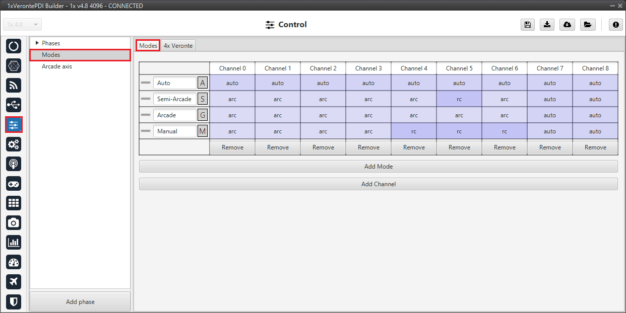 For more information on these control modes, visit the Modes - Control section of the 1x PDI Builder user manual.