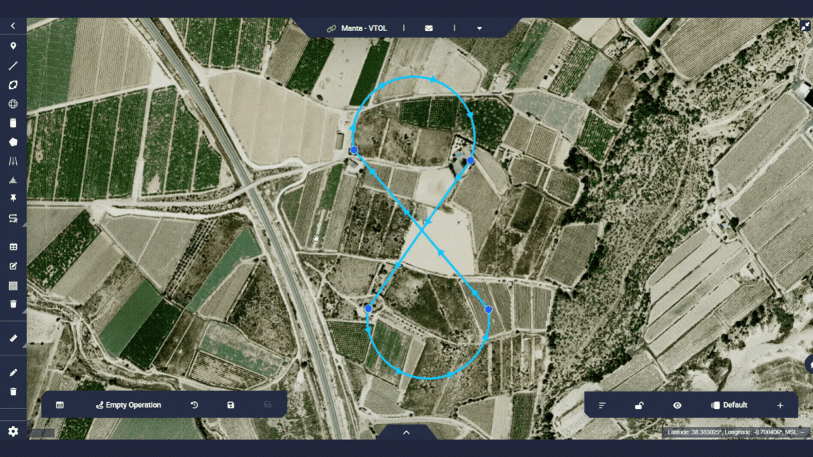 This operation will be defined as a closed route in figure of 8. It is a simple and basic mission that will serve as an example to learn how to use the Veronte Ops application.