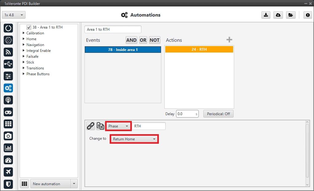 An automation will be created for the autopilot to pass to the Return to Home phase when it is inside Area 1: