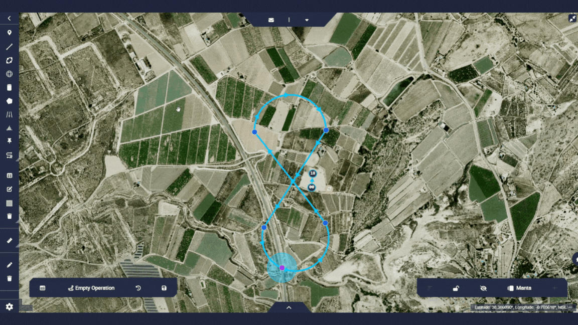 This operation implements some of the main functionalities of the areas option. Generally, these areas are used as events that trigger an action, or as obstacles that the guidance program will avoid flying over.