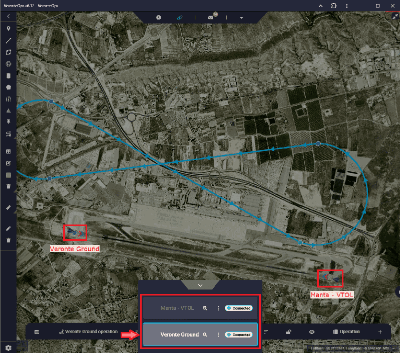 If everything went well, the user will be able to see the air unit in both Veronte Link and Veronte Ops by physically connecting only the ground unit.