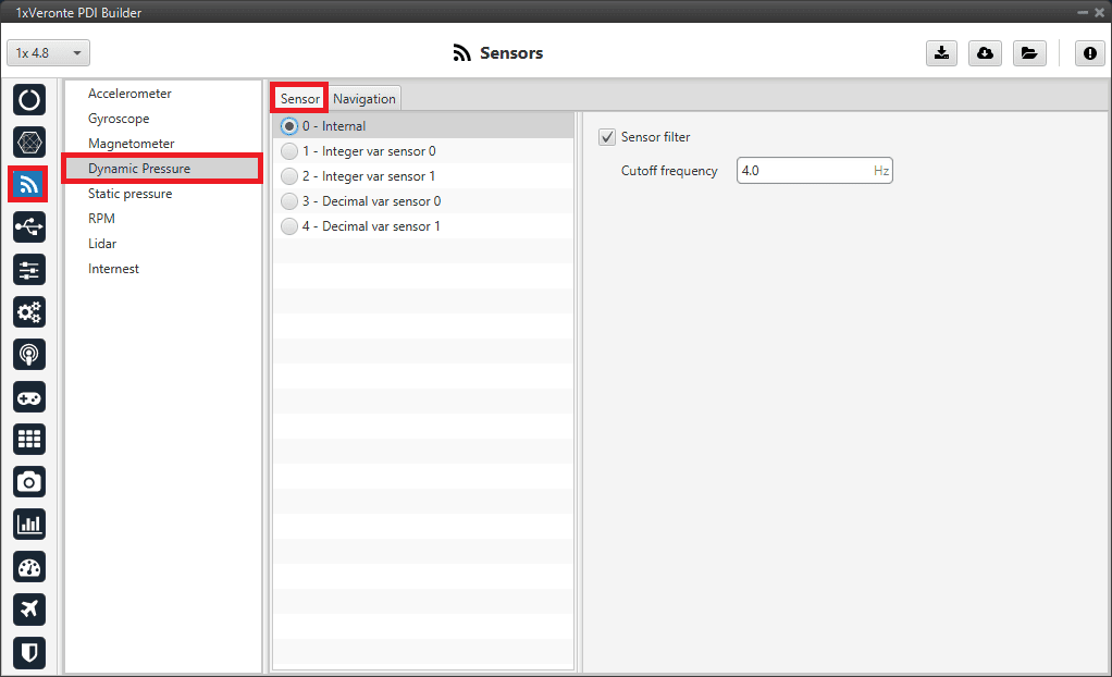 For a detailed explanation of the available dynamic pressure sensors, please visit the Dynamic Pressure - Sensors section of the 1x PDI Builder user manual.