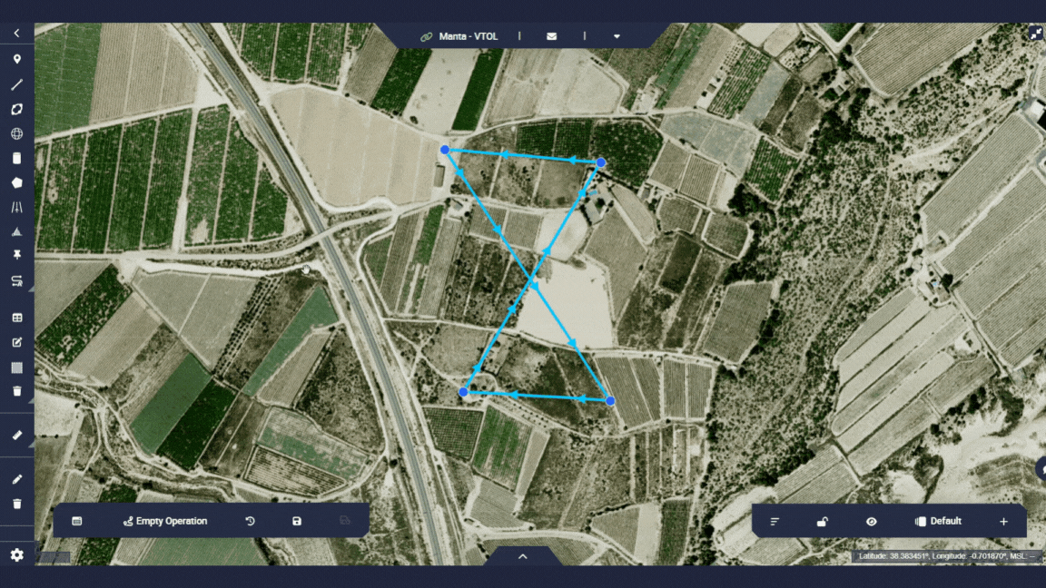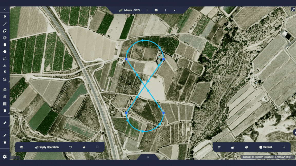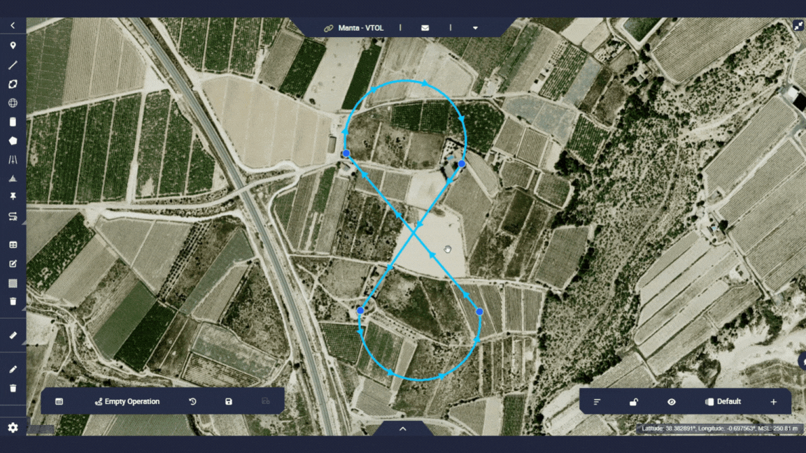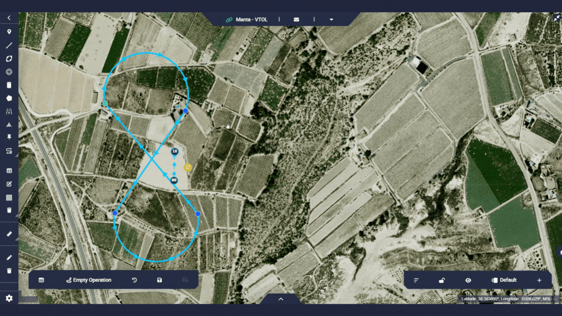 This operation will be defined as a closed route in figure of 8. It is a simple and basic mission that will serve as an example to learn how to use the Veronte Ops application.