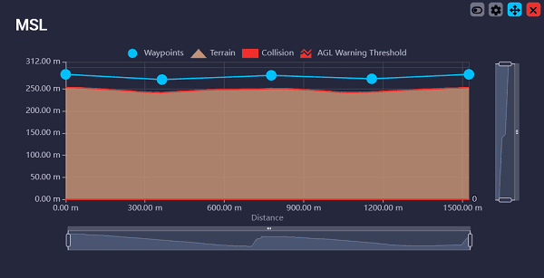 Check the altitude of the route waypoints with respect to the ground, to make sure that the route is feasible, i.e. does not interfere with the terrain.