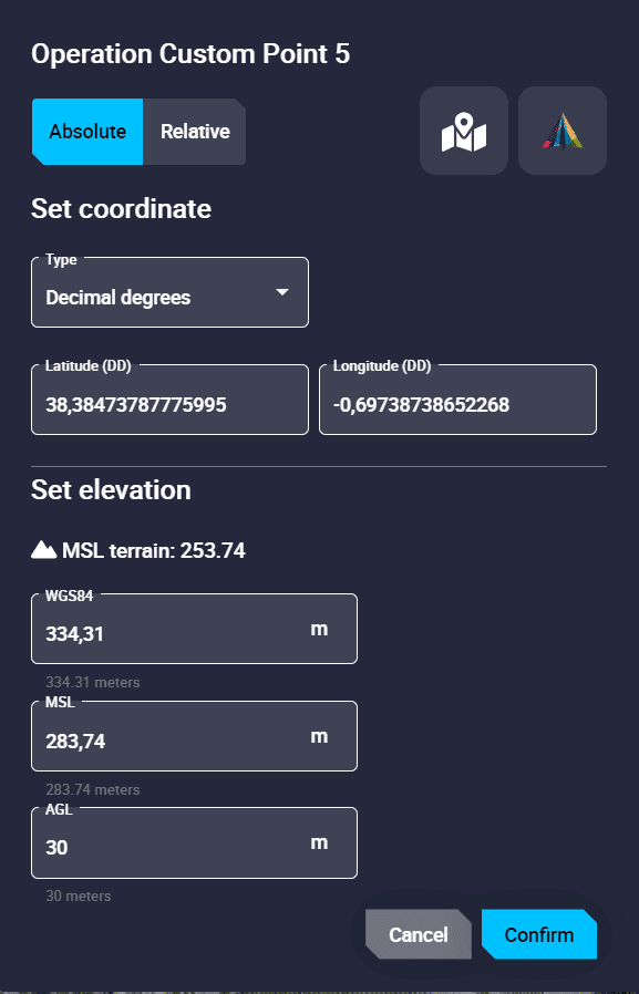 If this point is not defined, Veronte Ops will not allow the operation to be saved.